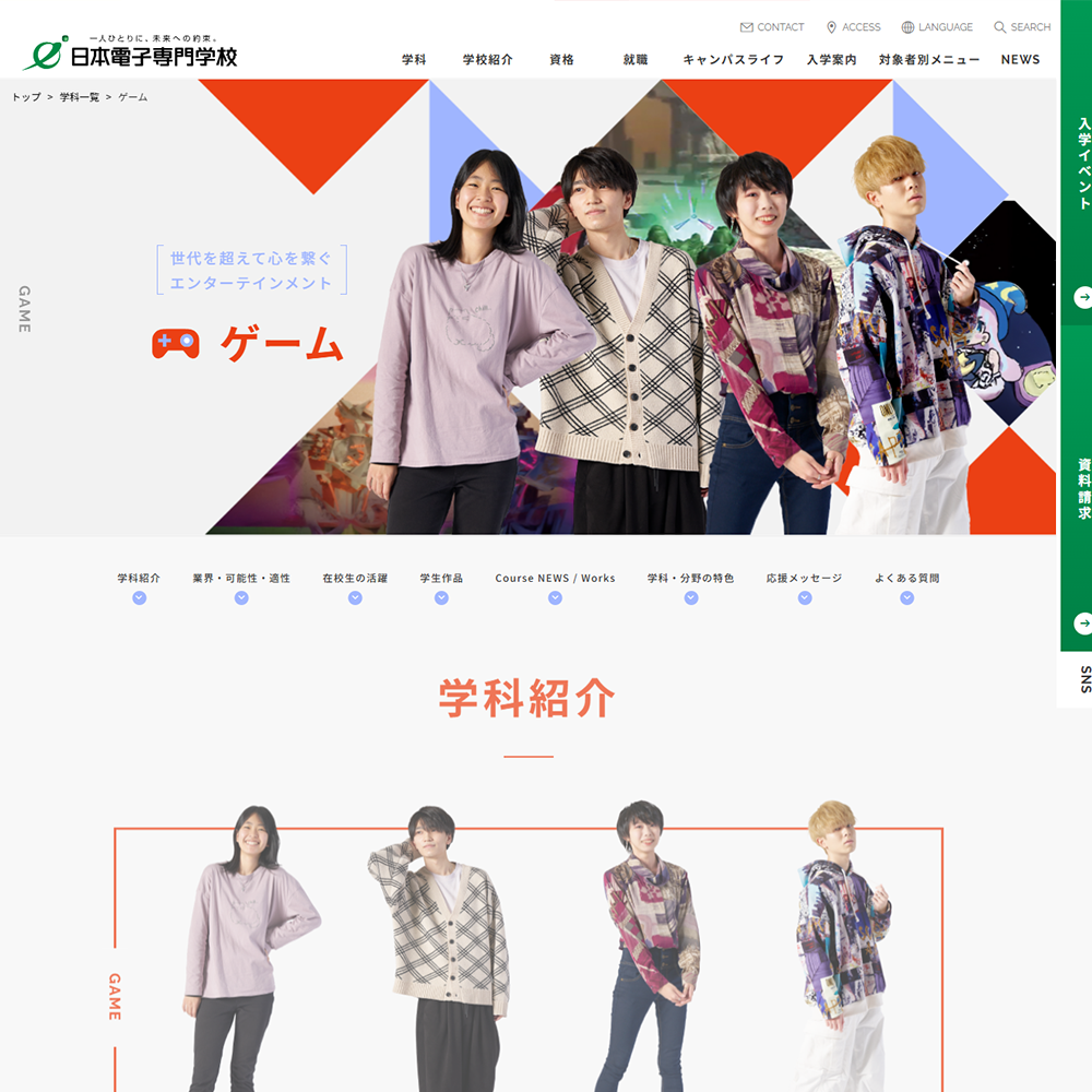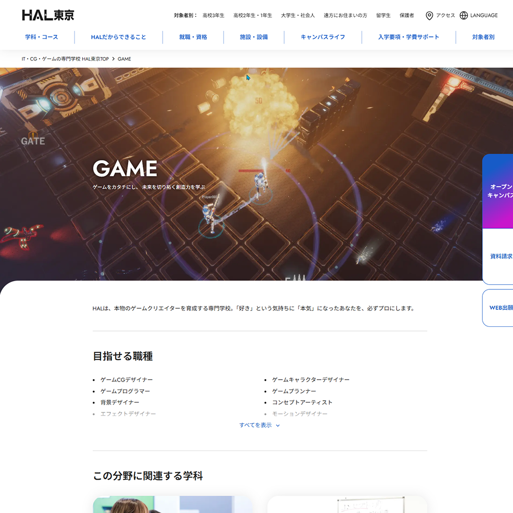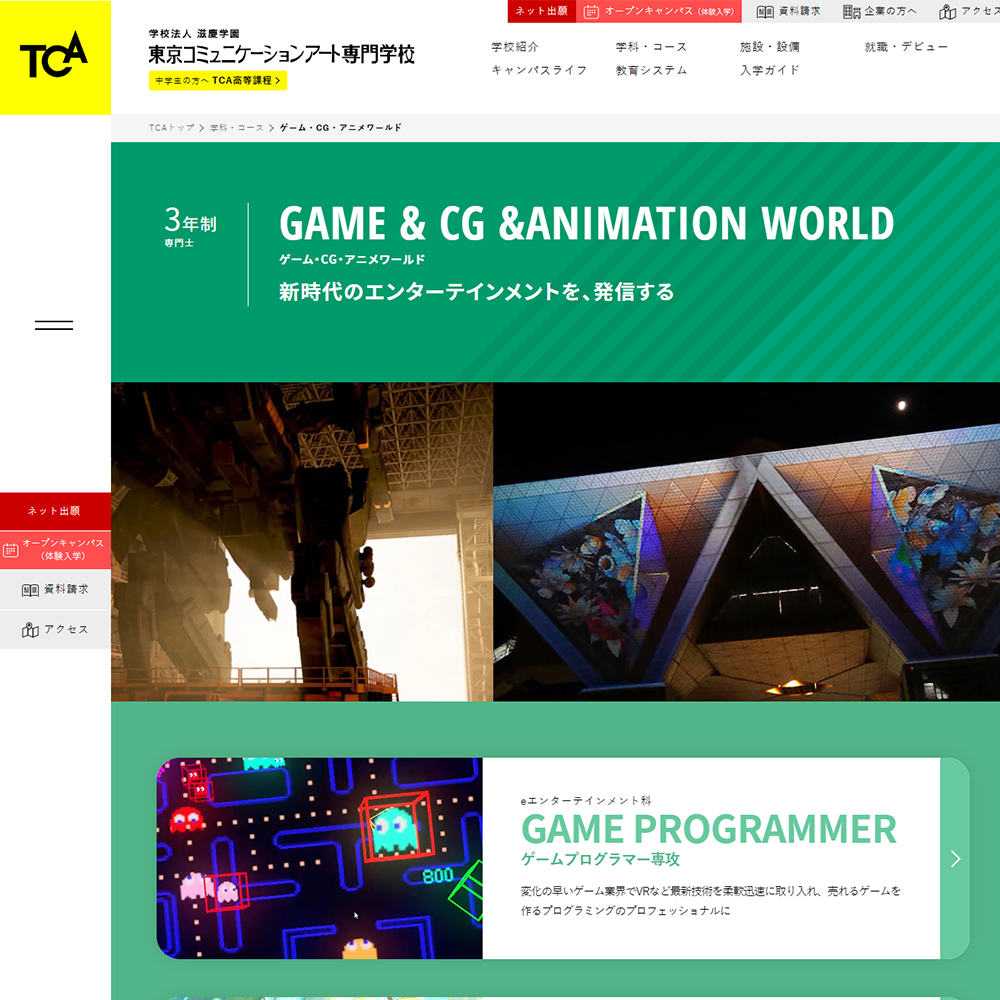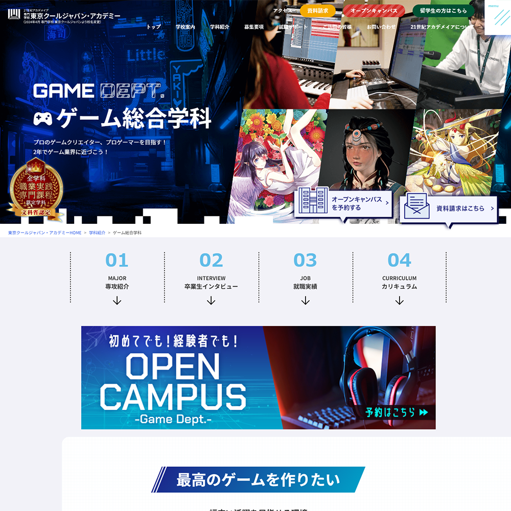 - 最新鋭のマシン、ゲームクリエイターを目指す方向けのスペシャルサイトなどが充実