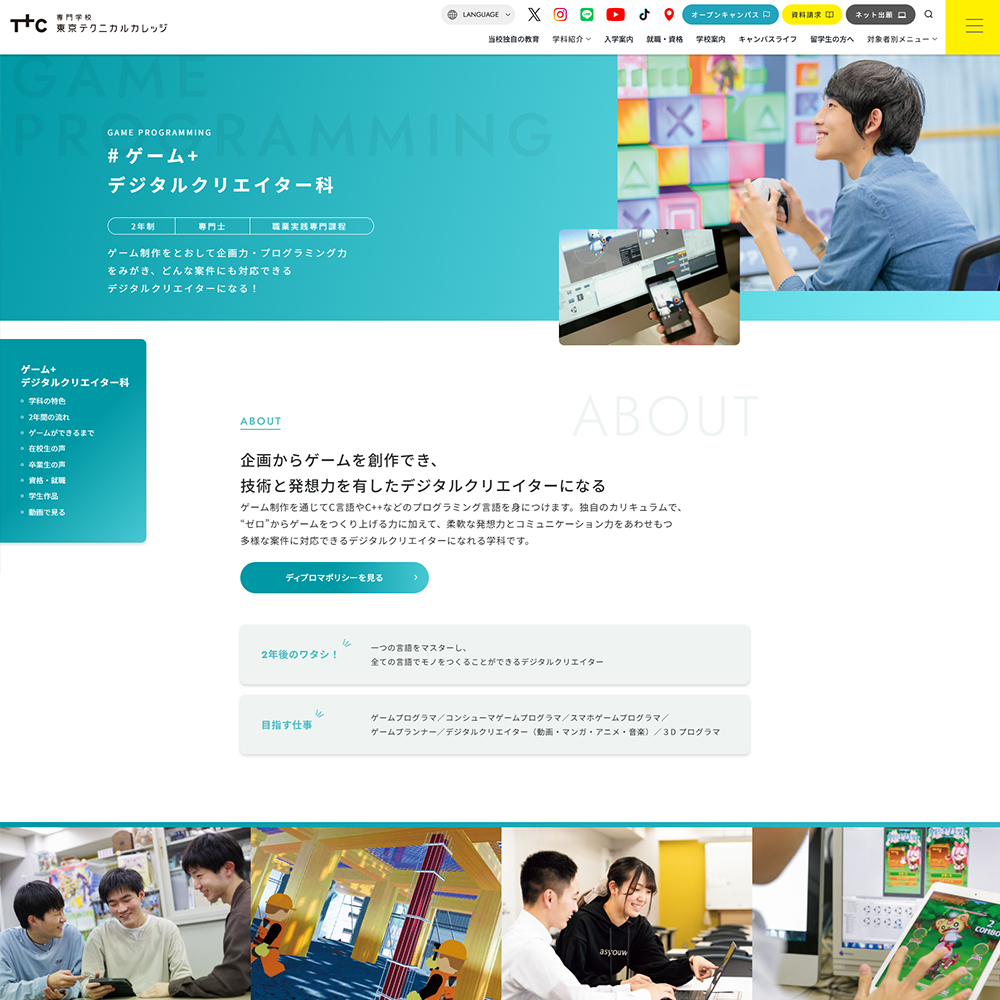 - プログラム・企画・サウンドなど幅広い分野のゲームクリエイターを目指せる